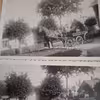 Kulbyvej 8. Hest foran vogn begynder at spise græs på plæne foran huset.