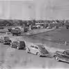 Kilometerlang benzin kø ved Schrøders Service på Rugårdsvej, marts 1956