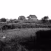 Bolbro Skole med kolonihaver i forgrunden, ca. 1940