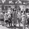 En børnehave ankommer til dyrskuet.