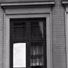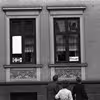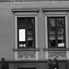 Frisør i Odense. Skilt i vinduet med tekst: " Her bor ikke nazister".