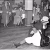 Søstrene fra v. Susanne, Jette og Lis Hansen til fastelavnsbal ca. 1955 på Skov og Tolneborgs danseskole, Klingenberg 14.