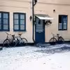 Gård i Albanigade med en julesmykket dør, julen 1961.