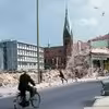 Husrækken først i Overgade en brudt igennem så der er kik til Sct. Albani Kirke og Hafnia hus.