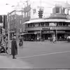 Trafikomlægning i Centrum i 1971. Her ved Skt. Knuds Kirkestræde ved Klaregade med nyt helleanlæg.