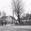 Mageløs set mod nordøst ved krydset Klaregade med Skt. Knuds Kirke i baggrunden. 1950-1970.