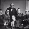 Familien Neckelmann 1895-1900, forrest frk. Ketty Aschlund, de øvrige alle søskende, f.v. Ketty Aschlund, Anna, August, Scherine og Martin Neckelmann.
