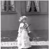 Officerstine foran hus på Nørrebro. Hun boede på Tolderlundsvej. Hendes borgerlige navn var Kirsten Andersen, f.d. Sct. Knuds sg. i 1838 og død i Forsørgelsesvæsenets Syge- afdeling i 1922 Se også B23567