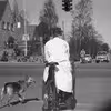 Velafrettet schæfer venter på grønt lys, april 1959