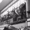 Tilskuere på terrassen i IG-huset. 5. maj 1945.