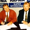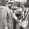 Aalborg Boldspilklub. Søren Kaalund til venstre og Jens Steffensen udveksler håndtryk. År 1976
