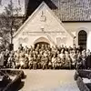 Guldkonfirmation i Tinglev årgang 1948 samlet foran kirken i 1998
