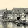 Åen set fra øst mod Pakhuset i bindingsværk