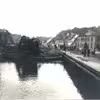Parti fra den gamle Aa i Horsens. Foto af åen set mod øst fra syd Grønland. På åens nordside ses det gamle pakhus.