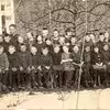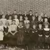 Elever og lærere fotograferet udenfor en teglstens bygning, muligvis Serridslev skole.