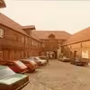 Baggården med parkerede biler