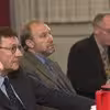 Erhvervsminister Ole Stavad (1949- ) til møde med tre borgmestre. 2001.