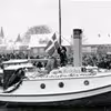 Julemandens ankomst med motorbåden Mågen til Havnepladsen.