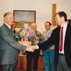 Bent Poulsen, borgmester Blåbjerg Kommune hylder to mestre i taekwondo.