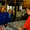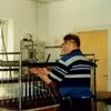 Nordia Lys A/S. Jes Lauridsen væger en ramme op til stagelys. ca. 2002.