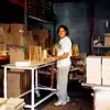 Nordia Lys A/S. Magny Larsen klar til at pakke stagelys. ca. 2002.