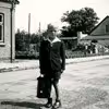 Allan Vinge Nielsen, på vej til første skoledag på Skovlund skole. ca 1946.