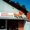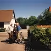 Børn på udhæng ved Anny's Blomsterbutik, Skovlund, ca.1990.