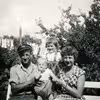 Thorkild Rasmussen med hustru og børn i haven, Skovlund. ca. 1953.