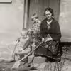 Søstrene Larsen: Hanne Lykke, Jytte Marie Askjær og Betty Askjær Larsen i haven på Lundvej 8, Skovlund ca. 1936.