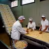 Pommefrites bånd på Sanalco A/S, Skovlund ca. 1980.