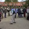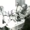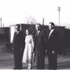 Gårdejer Frede Justesen, Eleonora, Skoleleder Martin Ebbesen og tømrerm. Carl Larsen ved Magleby skole.
