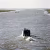 Båd sejler gennem Kammerslusen ved Ribe, november 2000