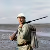 Fisker Charles Poulsen med olieindsmurt fugl, ved Ribe Kammersluse, 1970-1983