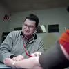 Overlæge David Bøggild, Ribe Sygehus, på stuegang sammen med ukendt læge, 1950'erne