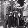 6.juli 1945 daværende kronprins Frederik på rådhustrappen bagved kronprinsen borgmester Ingvard Arent yderst overofficer Odderskov