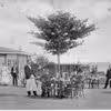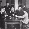 Fire herrer omkring en vandpumpe. T.v. ses borgmester Frantz Hansen og t.h. forligsmand Molbeck.De to andre er vandværksbestyrer Wilhelm Jørgensen og tømremester Tolstrup.