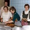Emma Blicher med køkken- og serveringspersonale, 1977