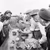 Frokost i det grønne efter præsentation af udgravninger, august 1960