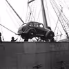Import af Austin-biler ved De forenede Automobilfabrikkers Esbjerg-afdeling i Nyhavnsgade, december 1952