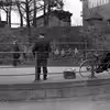 Mand udbyder dabs på rækværket ved tunellen i Borgergade, april 1944