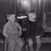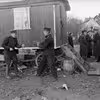 To drenge på trappen til en beboelsesvogn, februar 1948