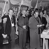Herre foran en del mennesker, taler ved udstillingsåbning, ca. 1950