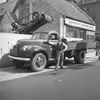 Falcks kranbil trækker beboelsesvogn væk, februar 1948