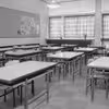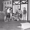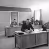 Mogens Kruse Hansen med skolebørn i skolebibliotek, april 1961