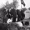 Logebrødre samles ved fhv. borgmester A. P. Brandholts åbne grav, september 1948