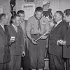 Blå og grønne pigespejde opstillet i farvel-parade, juni 1952