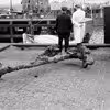Bogense-fisker lander skibsanker fra middelalderen i Esbjerg, maj 1952