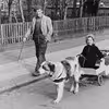 Dame med barnevogn med hund på underhylde, oktober 1965