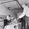 Opsætning af granguirlander i Kongensgade, 1954.