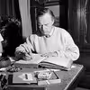 Pastor Eilif Krogager fører kirkebog, februar 1960